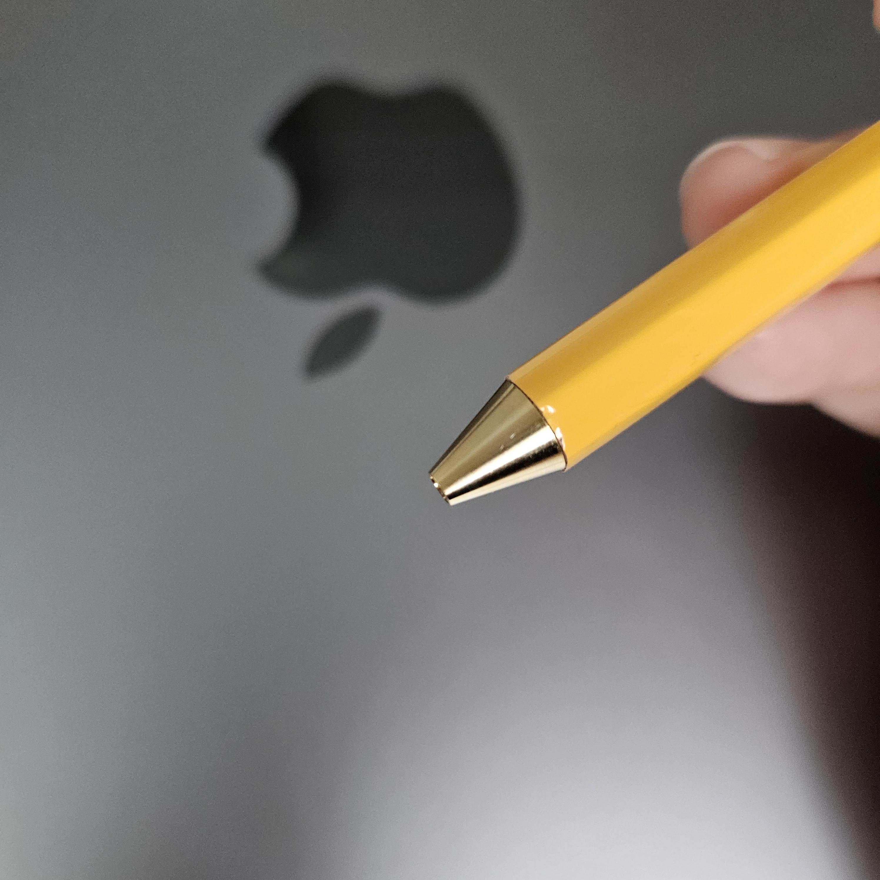 일단 겉모습을 보면 팬이 얇은 편입니다. 그래서 처음에는 좀 얇아서 잡는데 불편하지 않나 싶었는데 오래 쓰기에는 오히려 더 편하다고 느껴졌어요. 그리고 시간이 지나도 글자가 벗겨지거나 볼펜 면이 코팅이 벗겨지는 그런 느낌도 없어서 제가 지금 몇 달째 사용 중인데도 새것처럼 유지 중입니다.
