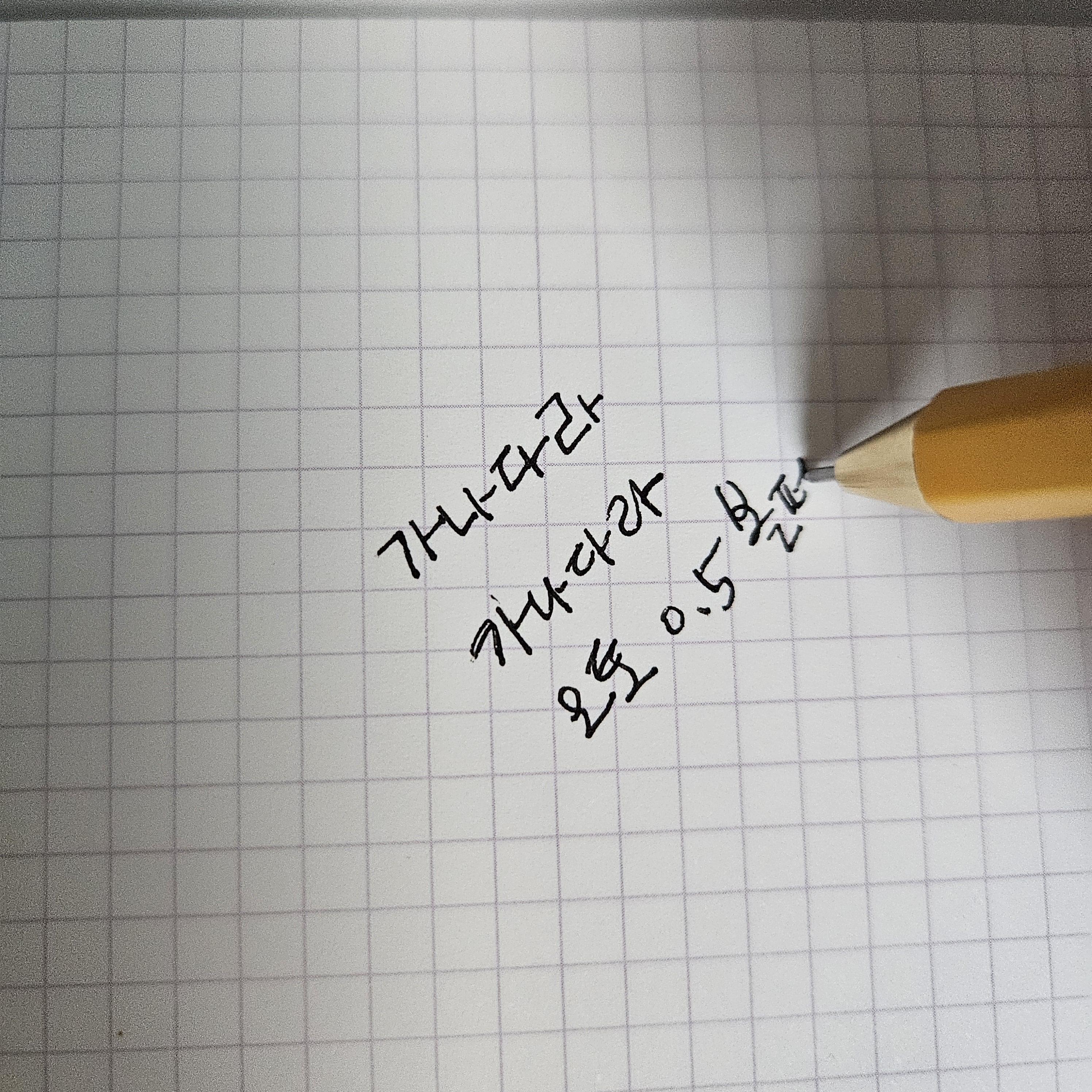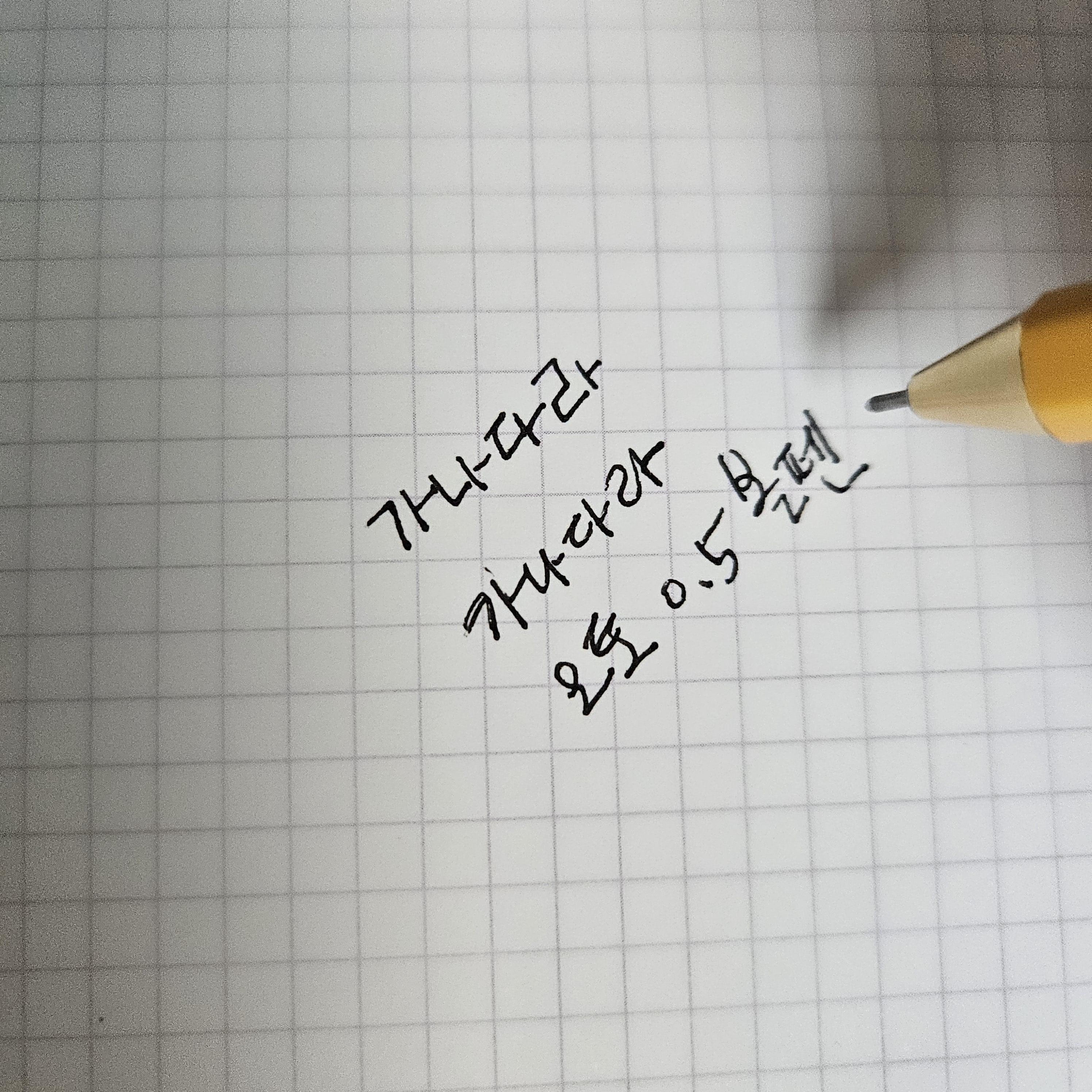 제가 좀 악필이긴 하지만 필기를 해보면 이에 사진처럼 얇게 써지는 제일 팬 스타일이에요. 그렇다고 잉크가방 넘쳐 흐리는게 아니라서 일반 필기나 책 필사할 때 저는 주로 사용하고 있는데 이런 면에서 만족합니다.