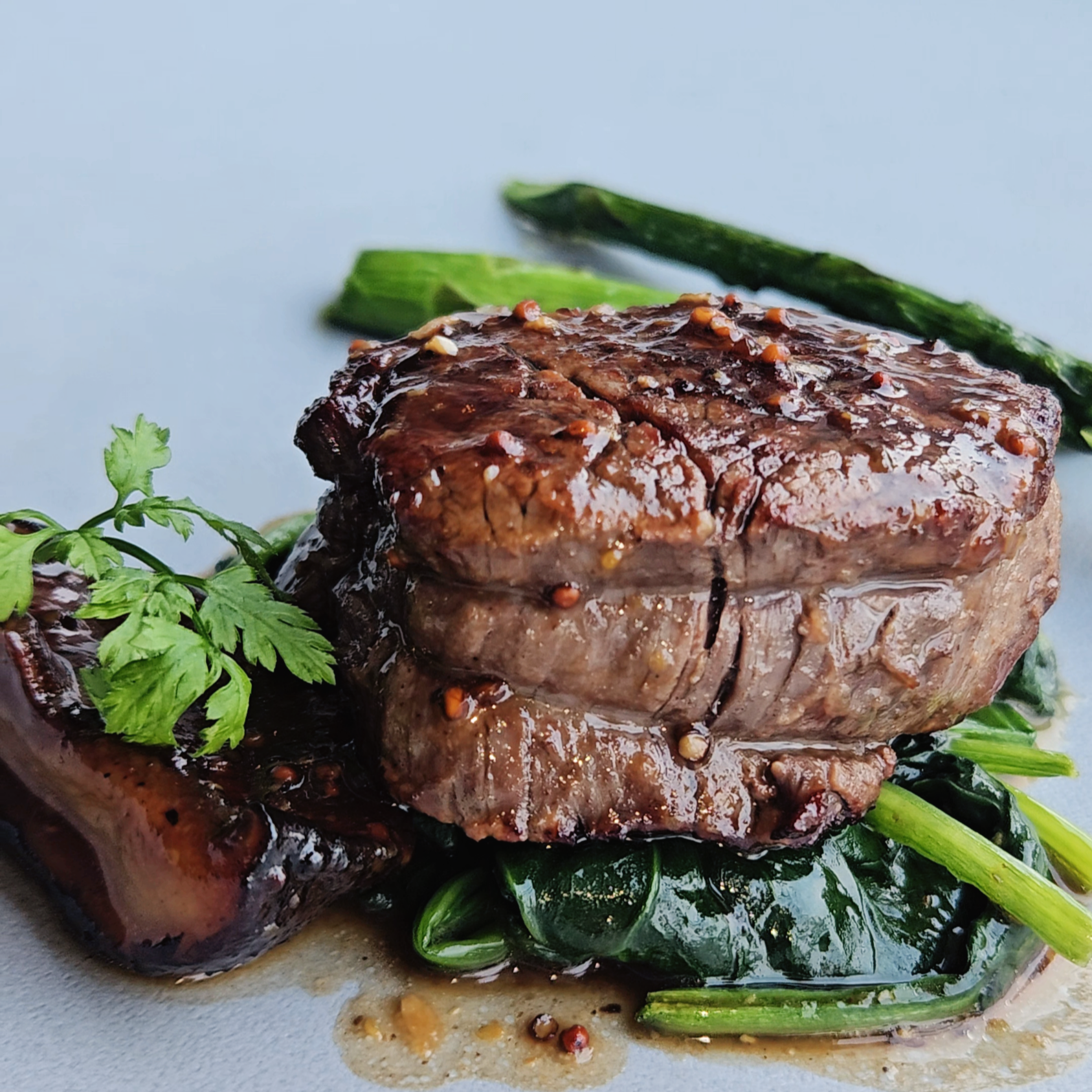 한우 안심 스테이크는 비프쥬 소스를 곁들인 요리였는데, 비주얼부터 먹음직스러웠어요. 와인과 함께 먹으니 정말 매력적인 맛이었어요. 코스 요리로 나와도 하나하나 다 비워내게 되는 매력이 있었어요.
