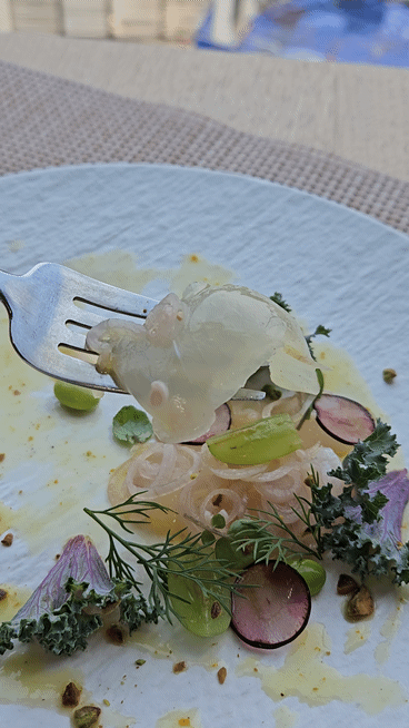 세비체는 광어와 다양한 야채에 오렌지 소스를 곁들인 요리였는데, 상큼한 오렌지 소스와 신선한 광어가 어우러져 상쾌한 맛을 선사했어요. 평소에 먹던 세비체와는 또 다른 매력이었어요.