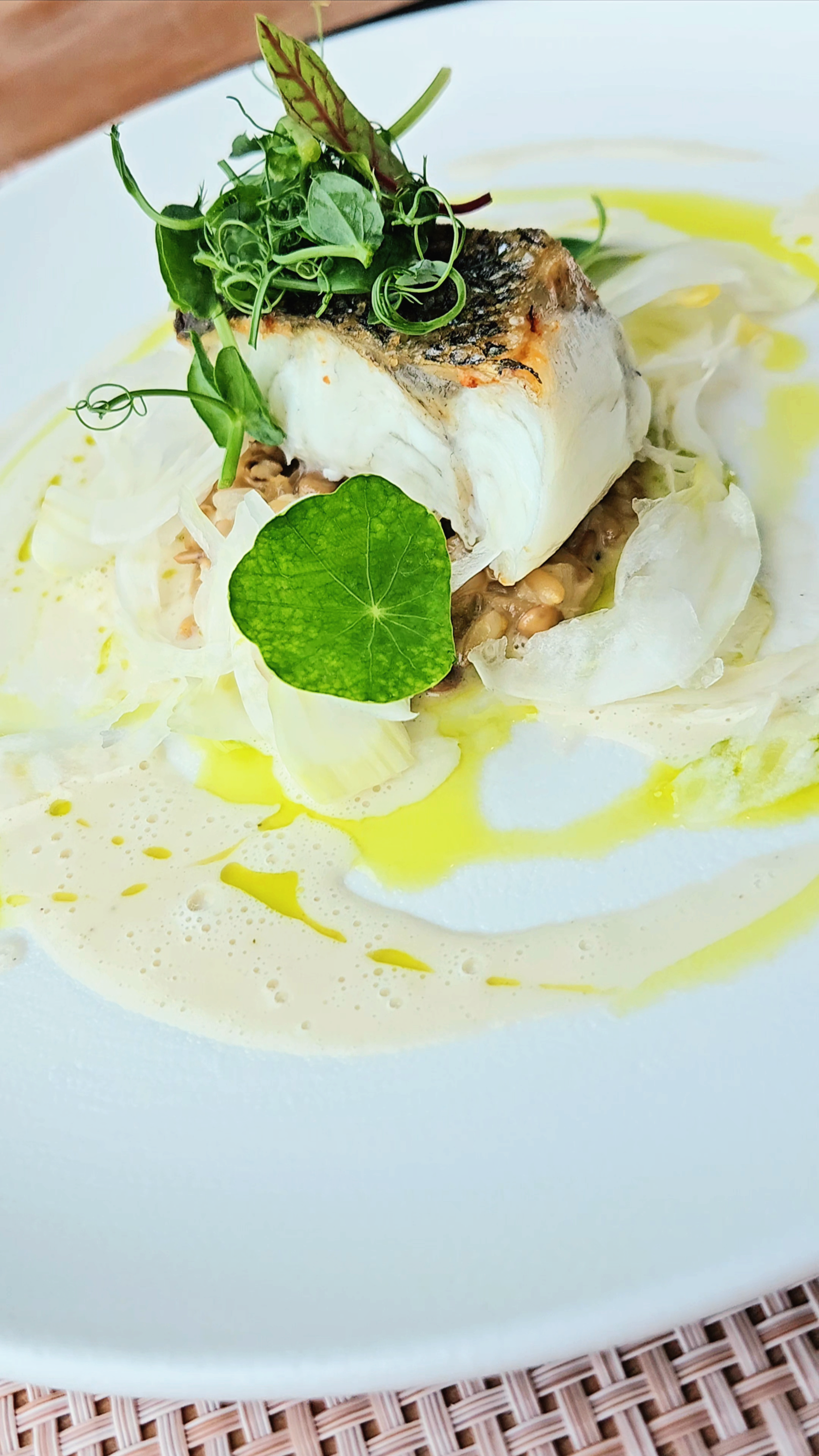 농어 구이는 귀리와 렌틸콩을 곁들인 요리였는데, 정말 건강한 한 끼였어요. 농어의 신선함과 곡물의 고소함이 잘 어우러져 있었어요. 다이어트를 생각하는 사람에게도 추천할 만한 메뉴였어요. 안국역 근처 파인다이닝 레스토랑 르꼬송 후기에서 건강한 메뉴로도 많이 언급되더라고요.