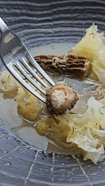 세 가지 버섯 요리는 정말 특별했어요. 닭고기 무스로 속을 채운 모렐버섯, 트러플과 백목이 버섯이 조화롭게 어우러져 있었는데, 진한 닭고기 스프와 버섯의 조화가 정말 감동적이었어요. 식감도 독특해서 먹는 동안 여러 번 감탄했어요. 창덕궁 뷰 맛집에서만 누릴 수 있는 특별한 맛이었어요.