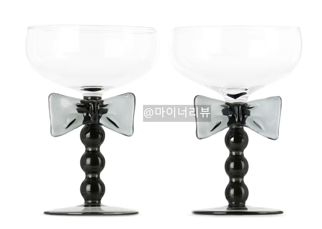 다음으로는 강민경 님이 사용하는 특별한 메종발작 블랙 리본 쿠페 글라스를 소개할게요. 이 글라스는 단순한 와인잔을 넘어서, 디자인과 실용성을 모두 잡은 아이템이에요. 블랙 리본 장식이 손잡이 역할을 해 편리하면서도 독특한 분위기를 더해줍니다.