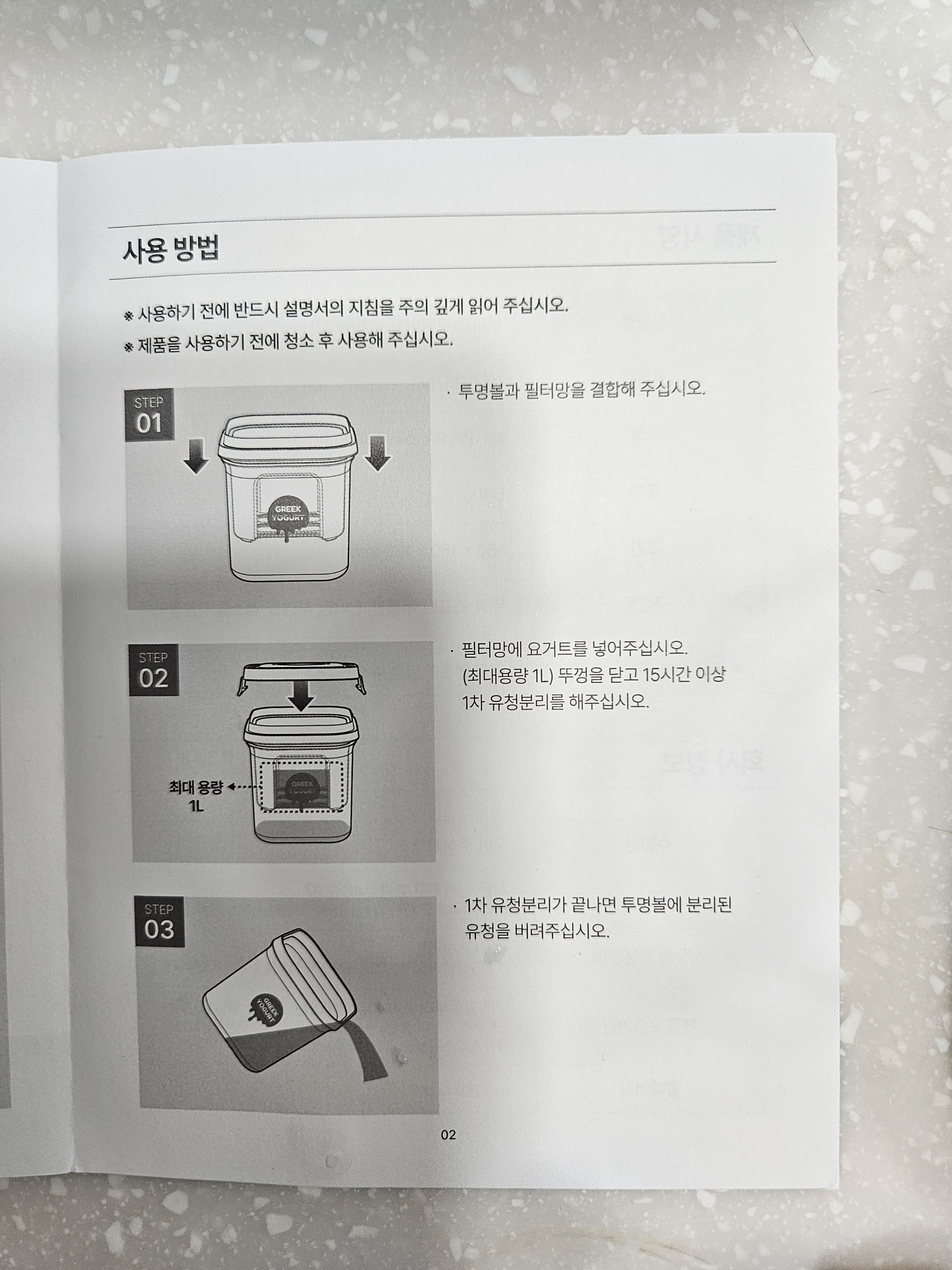 실제로 요거트를 만드는 과정은 너무 간단해서 누가 해도 실패할 수 없을 정도예요. 단, 한 가지 팁을 드리자면 처음엔 사용 설명서를 꼭 한번 정독하시는 걸 추천드려요. 저도 설명서를 건너뛰었다가 처음 몇 번은 약간 실패를 했거든요. 사용 방법은 크게 3단계로 나눌 수 있어요.
