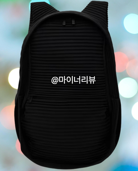 코쿤이 선택한 가방은 독특한 디자인으로 눈길을 끄는 이세이 미야케 블랙 데이팩 플리츠 백팩입니다. 이 가방은 플리츠 디자인이 돋보이며, 블랙 컬러로 제작되어 다양한 스타일에 자연스럽게 어울립니다.