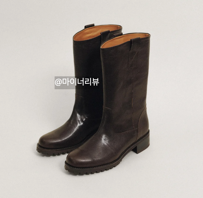 이 부츠는 길이가 하프 기장으로 디자인되어 다리가 길어 보이는 효과를 주고, 적당한 굽 높이 덕분에 편안한 착화감을 제공한다. 또한 텀블 워싱 공정을 거쳐 자연스러운 가죽 패턴을 살린 것이 특징이다. 덕분에 견고하면서도 멋스러운 분위기를 연출할 수 있다.