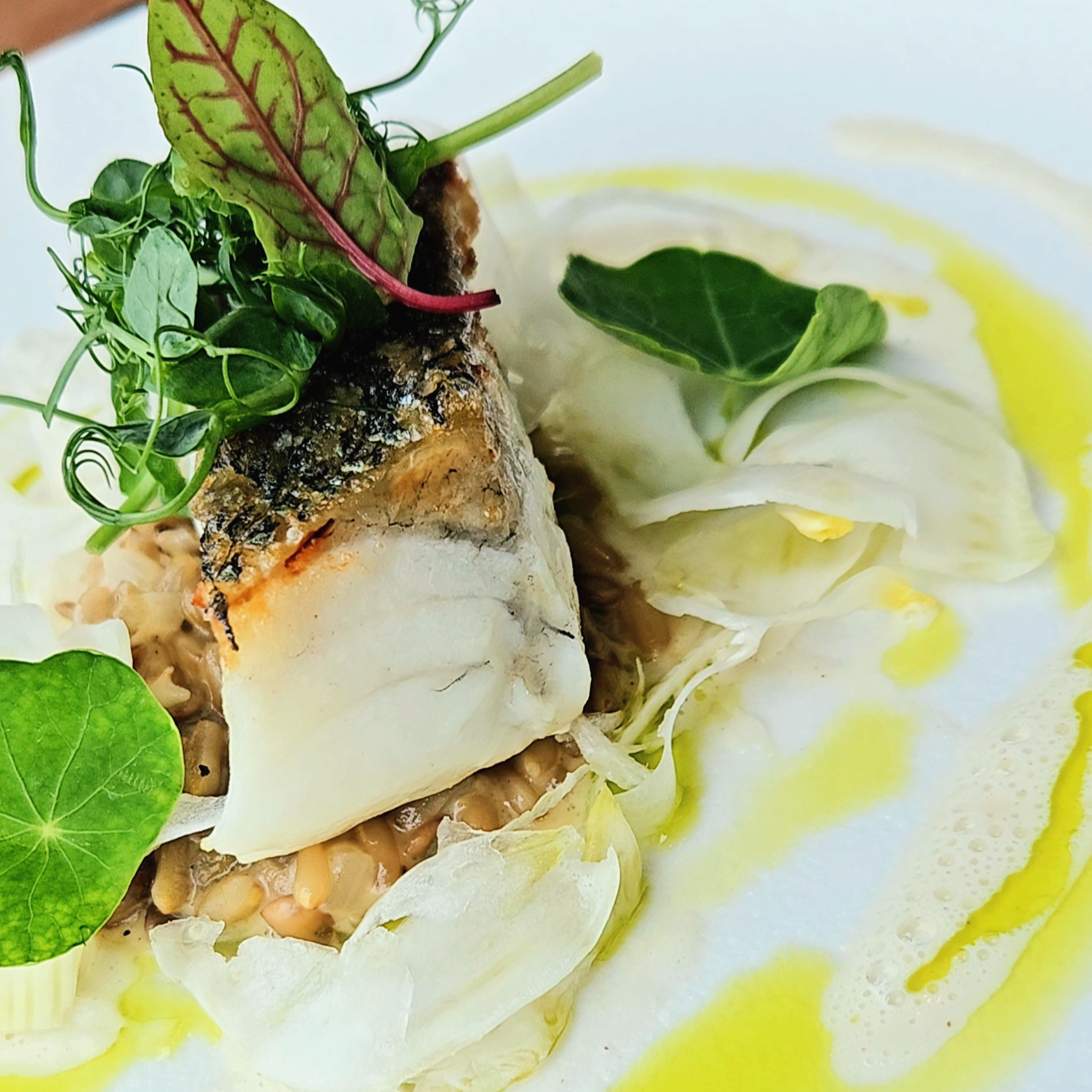 농어 구이는 귀리와 렌틸콩을 곁들인 요리였는데, 정말 건강한 한 끼였어요. 농어의 신선함과 곡물의 고소함이 잘 어우러져 있었어요. 다이어트를 생각하는 사람에게도 추천할 만한 메뉴였어요. 안국역 근처 파인다이닝 레스토랑 르꼬송 후기에서 건강한 메뉴로도 많이 언급되더라고요.