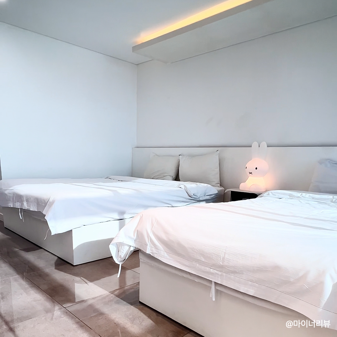 2층에는 침실과 화장실, 그리고 바베큐존이 있어요. 침대는 두 개가 있어서 넉넉하게 잘 수 있었고, 침구류도 편해서 꿀잠을 잘 수 있었답니다. 친구들끼리 여행 와도 공간 분리가 되어 있어 일찍 잠드는 친구들에게 큰 배려가 되겠죠? 2층 바베큐존은 따로 이용하진 않았지만 나만의 공간에서 먹고 즐길 수 있는 스팟이 있어서 훨씬 더 편하게 쉬다 갈 수 있었어요.