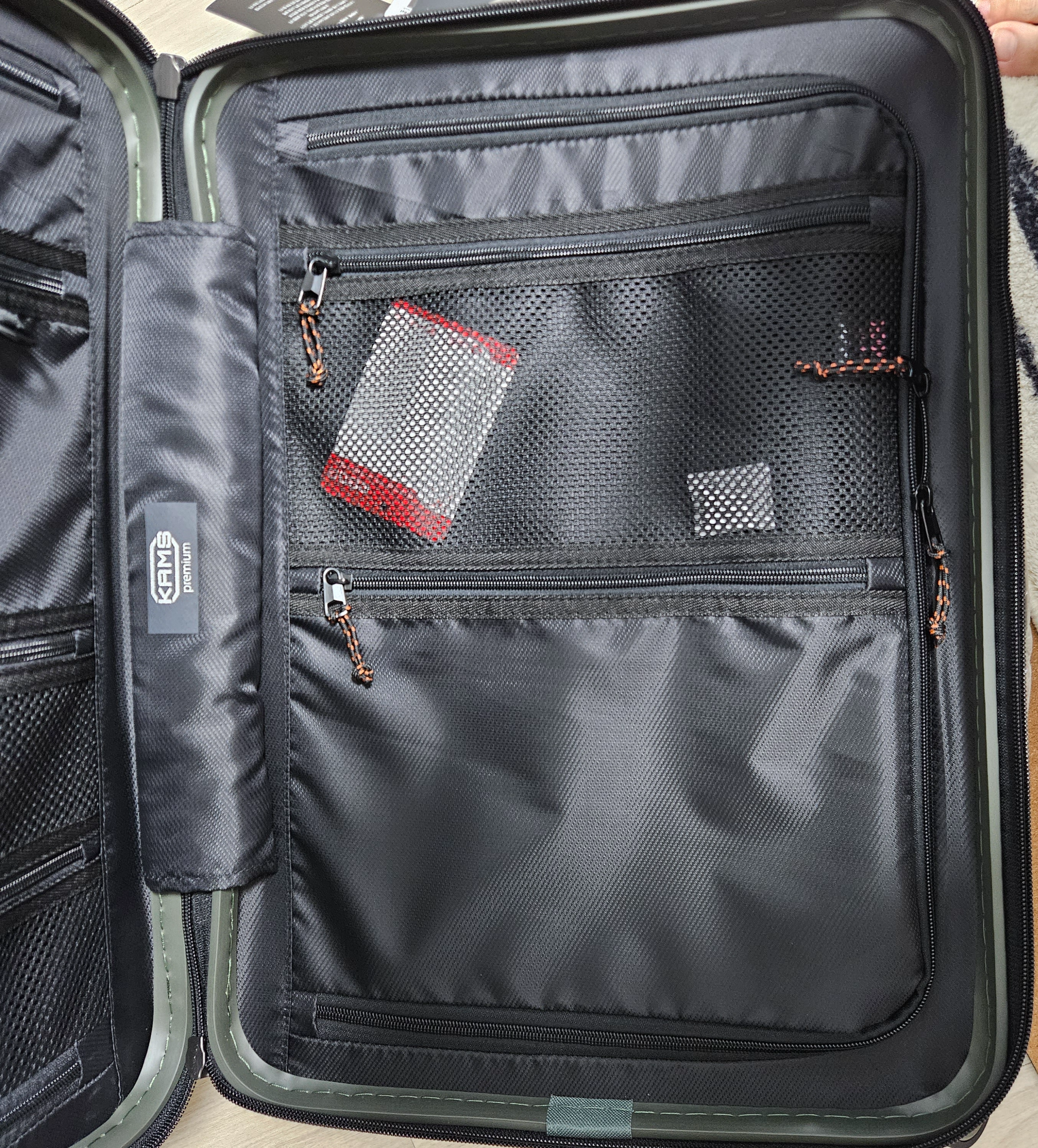 앞부분 포켓형 수납공간이 특히 편리했는데요, 공항이나 숙소에서 자주 꺼내는 물건들 넣어두기 딱이에요. 저는 여권, 충전기, 책, 안대 같은 거 앞쪽에 넣어두고 정말 유용하게 썼어요. 안 열어도 꺼낼 수 있는 구조라서 비행기에서 너무 편했죠.