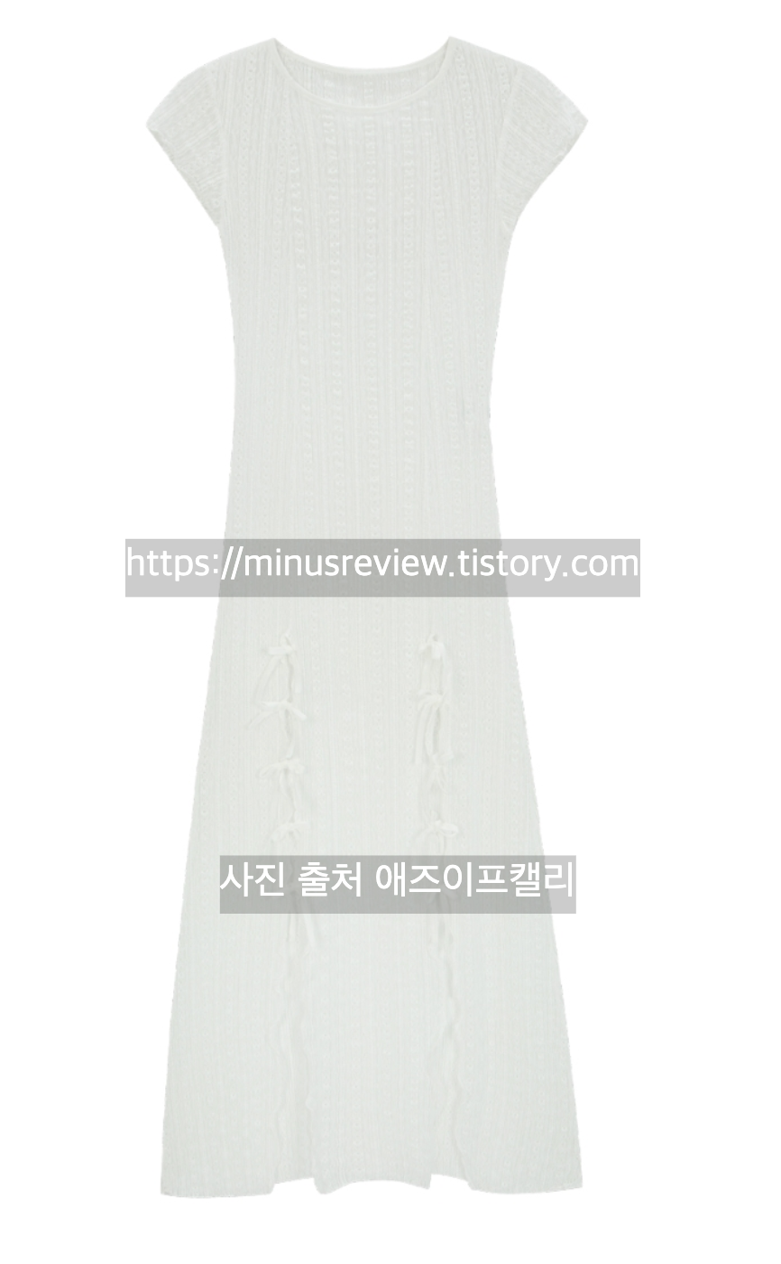 전종서님이 비키니 위에 레이어드한 시스루 원피스는 애즈이프캘리(ASIF-CALIE)의 'Ribbon Slit Maxi Dress'입니다. 이 제품은 전체 시스루 소재로, 몸매의 실루엣을 은은하게 드러내며 섹시한 매력을 뽐냅니다. 화이트 컬러의 맥시 기장으로 길고 우아한 느낌을 더하며, 비키니와 함께 입었을 때 부담스럽지 않은 노출로 스타일리시한 연출이 가능합니다.