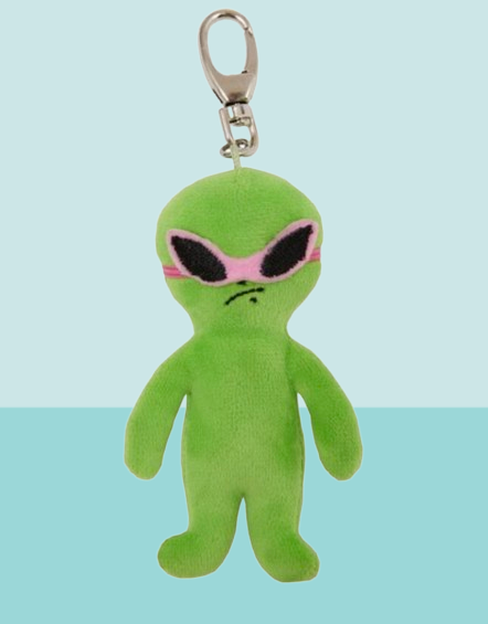 카리나가 소개한 외계인 키링은 '후드후드 에일리언 키링'입니다. 이 키링은 카리나가 슈퍼노바 활동 때 선물 받은 것으로, 선글라스를 내릴 수 있어 더욱 귀여운 디자인입니다. 그린 컬러로 가방에 포인트를 줄 수 있어요.